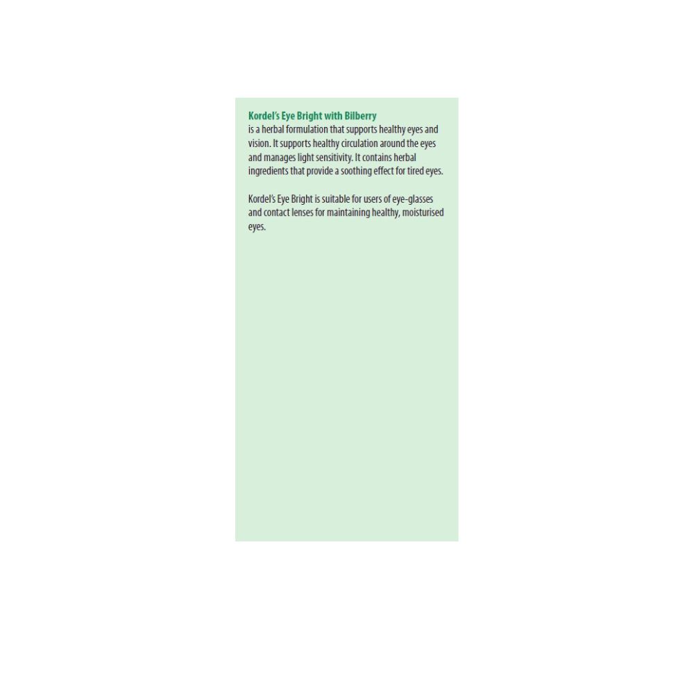 Kordel’s Eye Bright is suitable for users of eye-glasses and contact lenses for maintaining healthy, moisturised eyes.